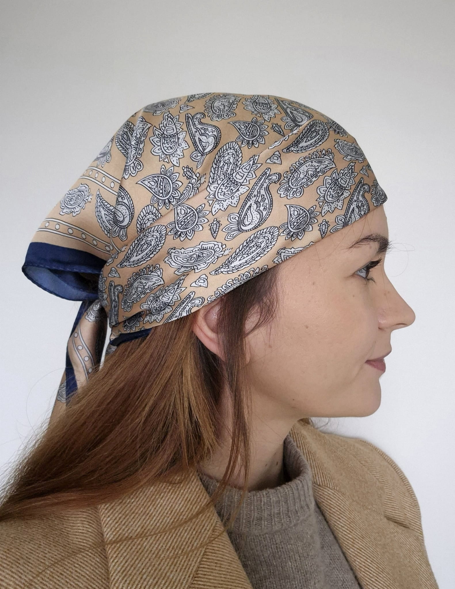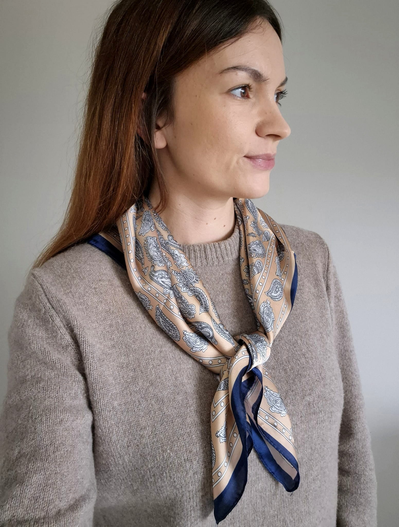 Apaszka damska na szyję - elegancki motyw paisley | beżowa