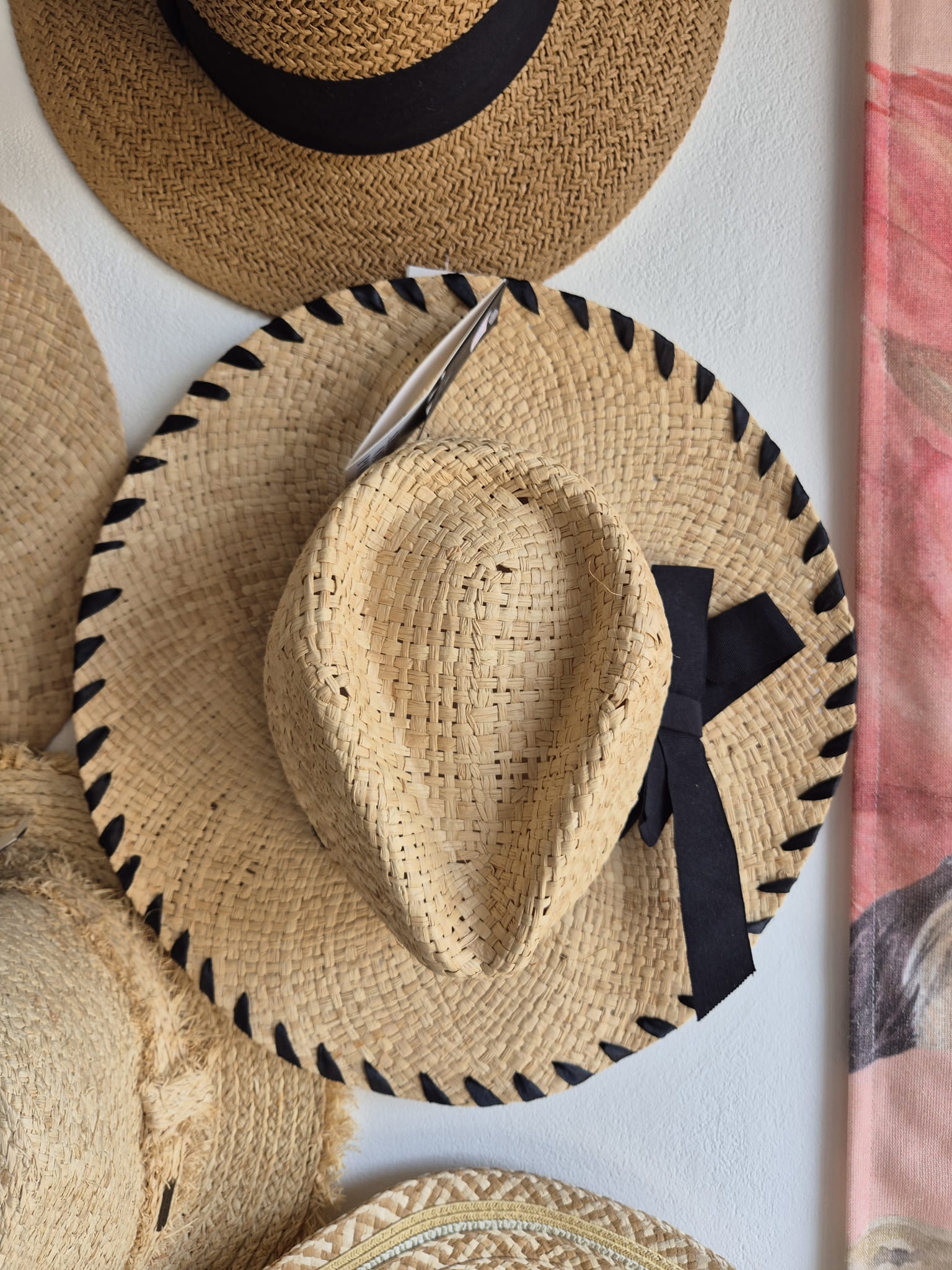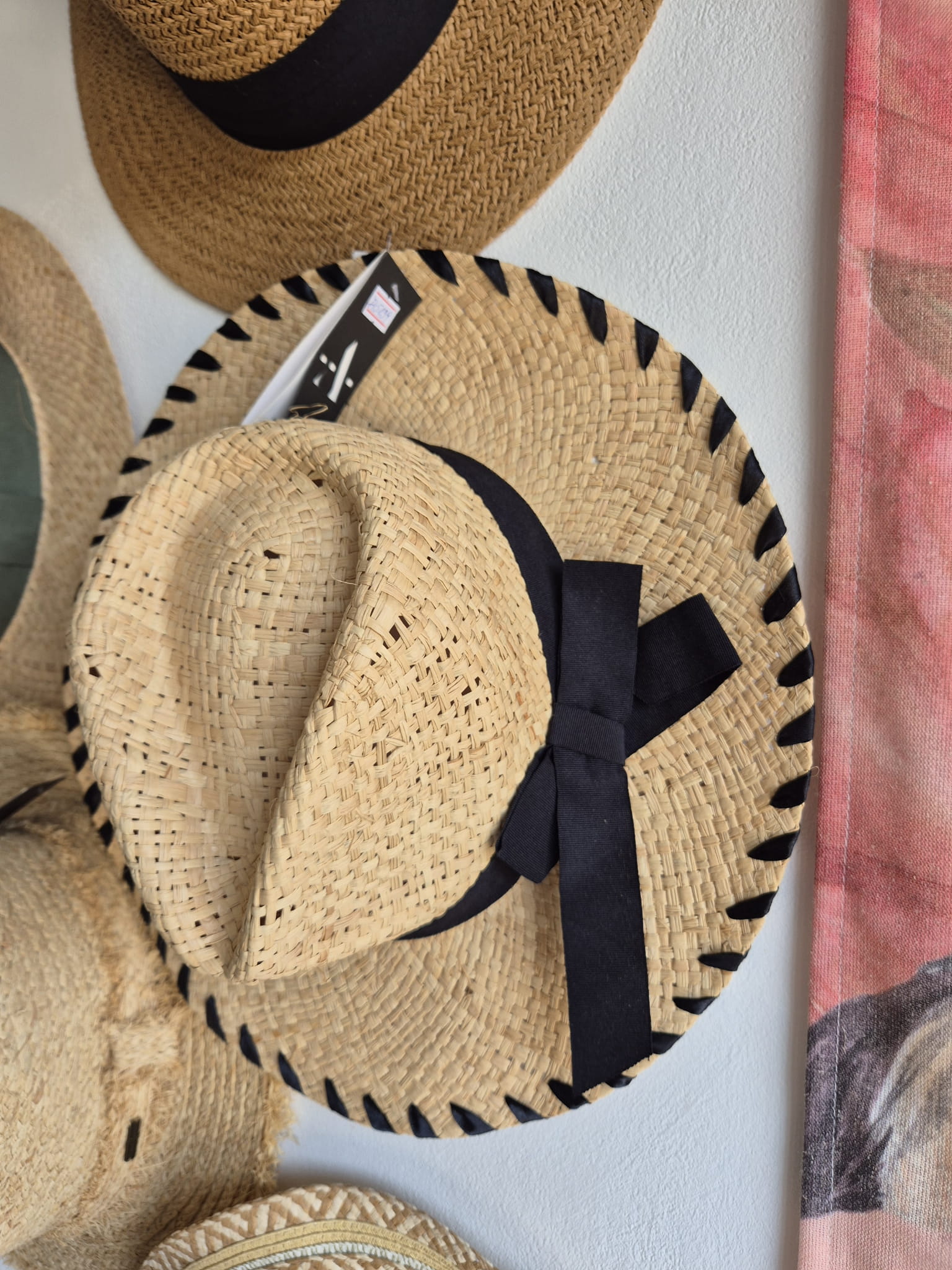 Arizona - Damski kapelusz na lato z czarną kokardą/ Kolor beżowy 100% trawa