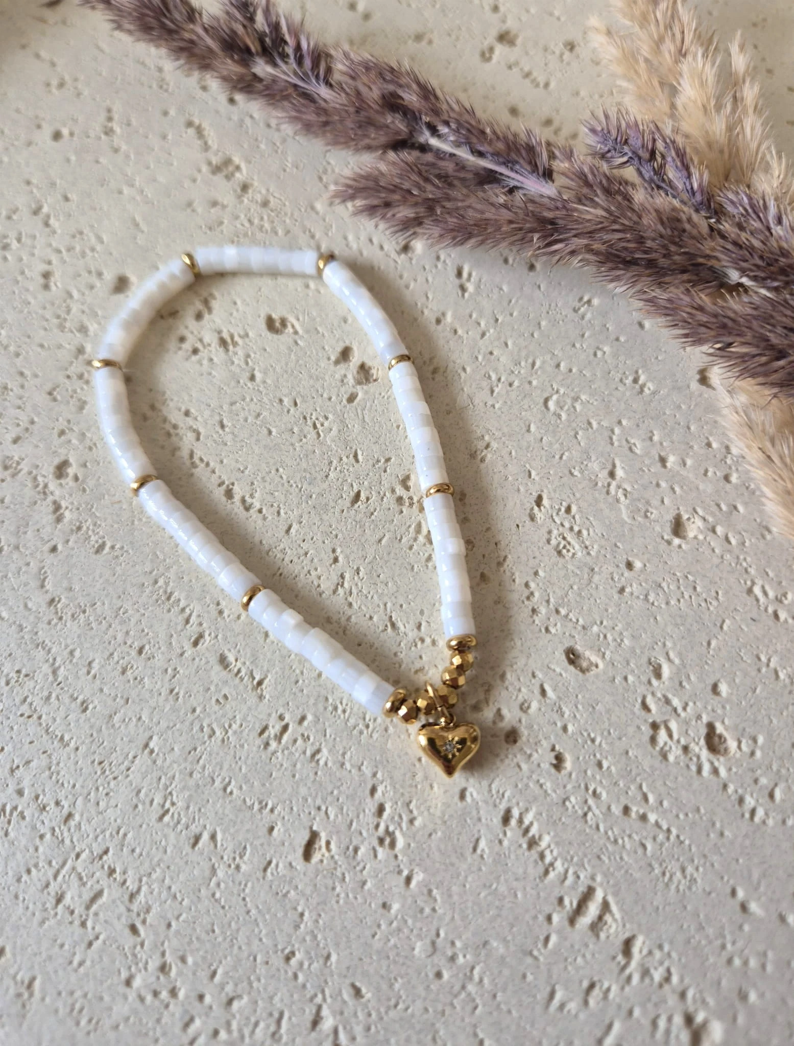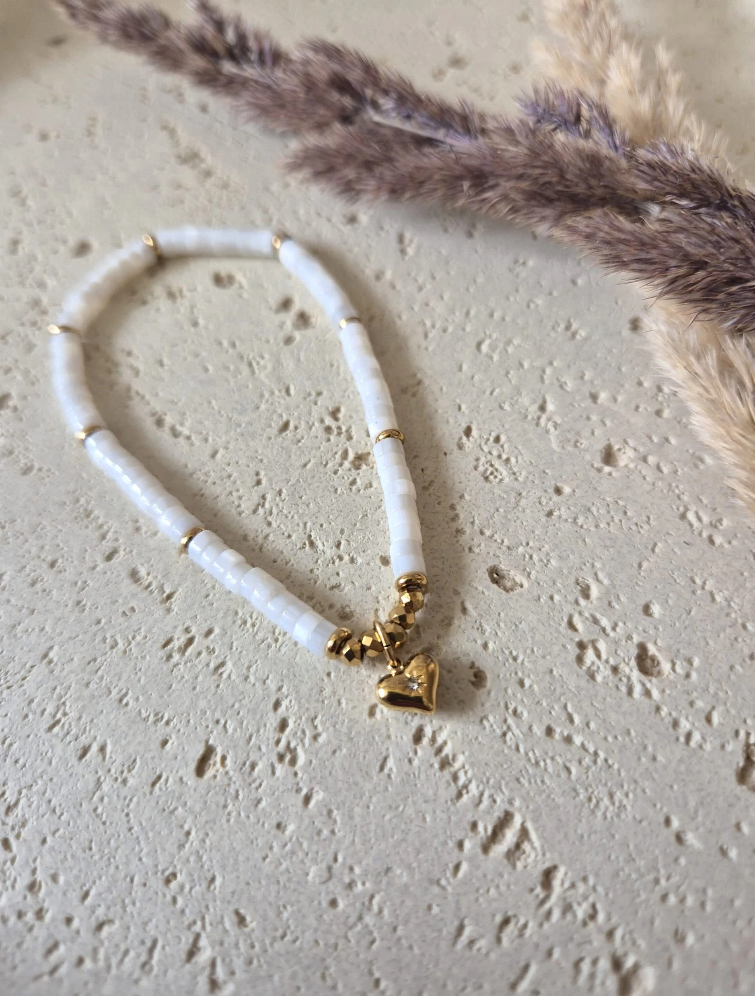 Bransoletka z Sercem Muszla Naturalna Pozłacana 16K | Biżuteria na Dzień Mamy | Prezent z Dedykacją