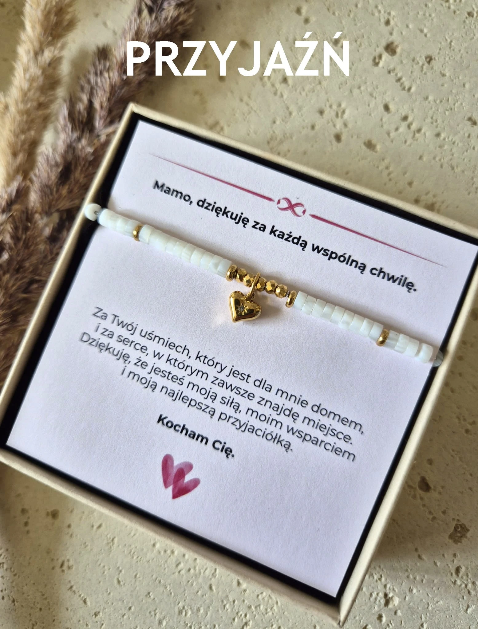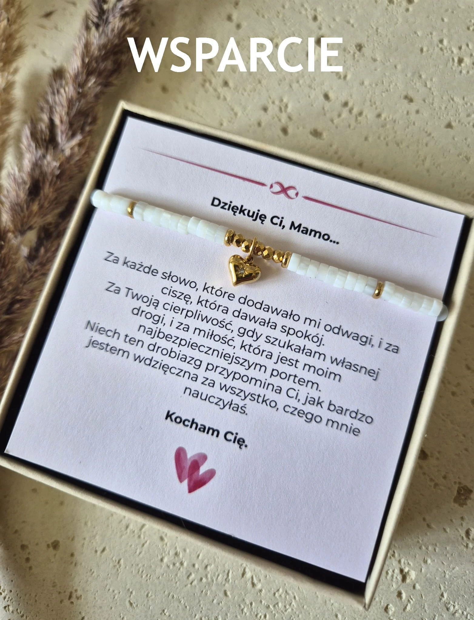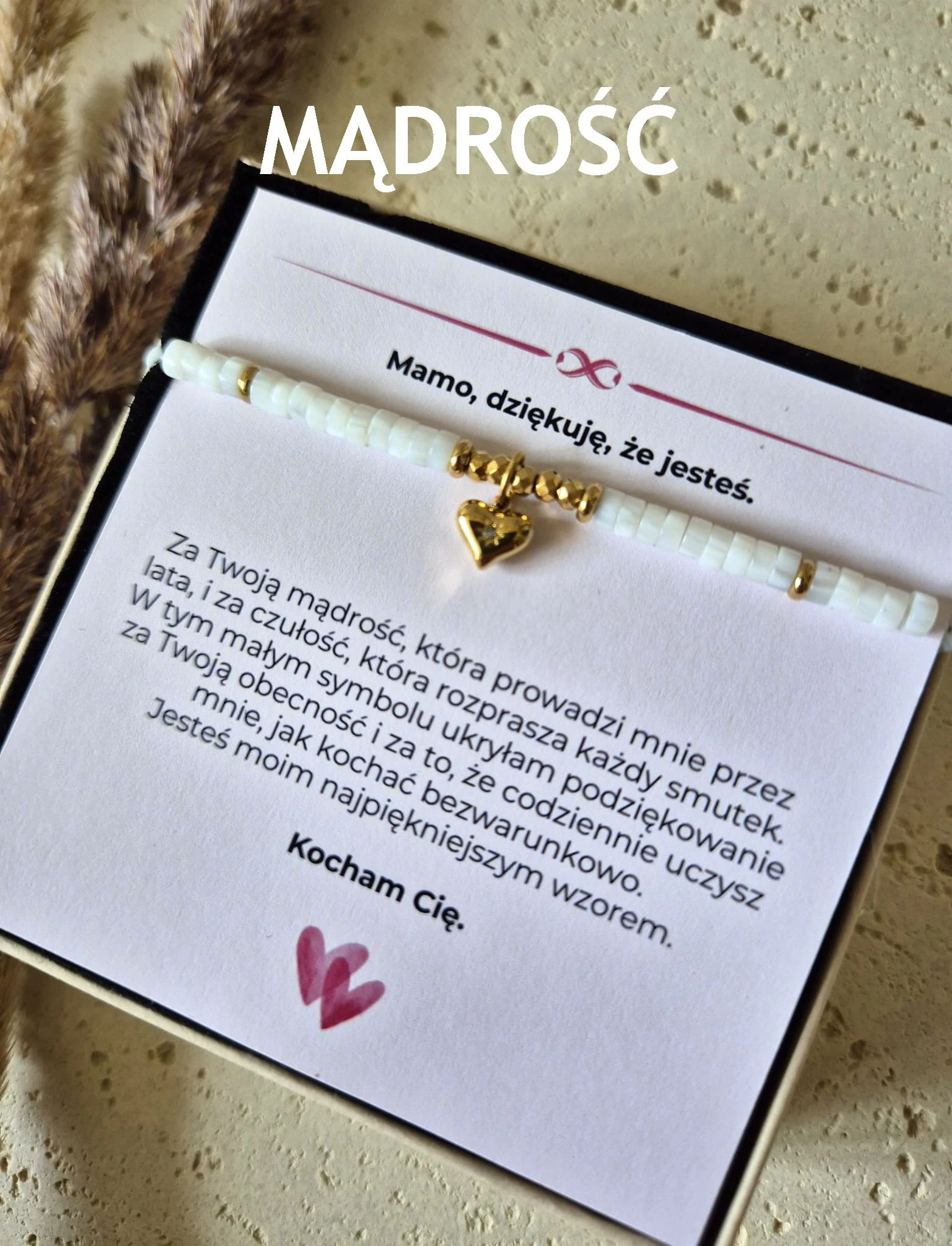 Wyjątkowe połączenie symboliki serca i naturalnego blasku muszli, stworzone jako osobiste podziękowanie dla Mamy.