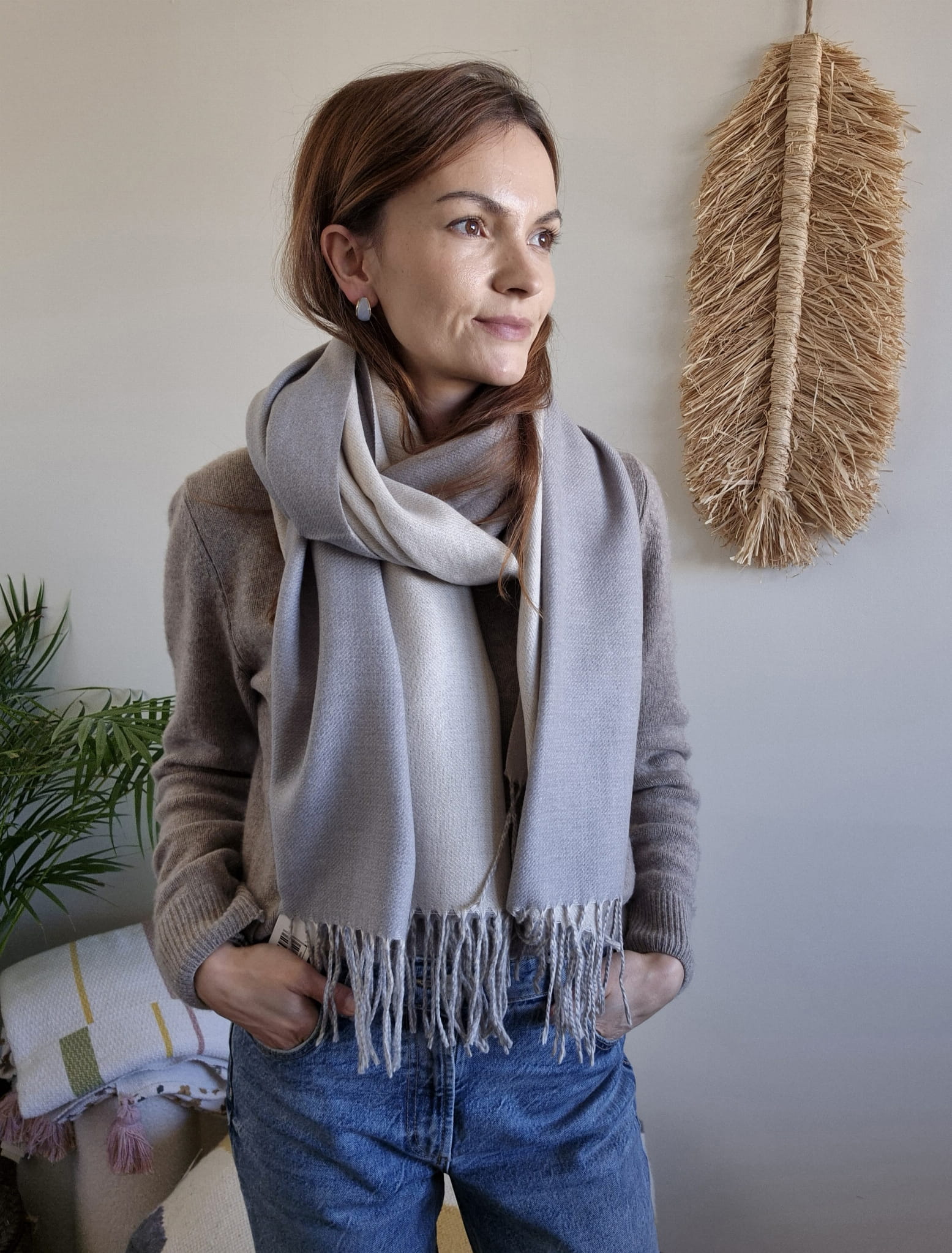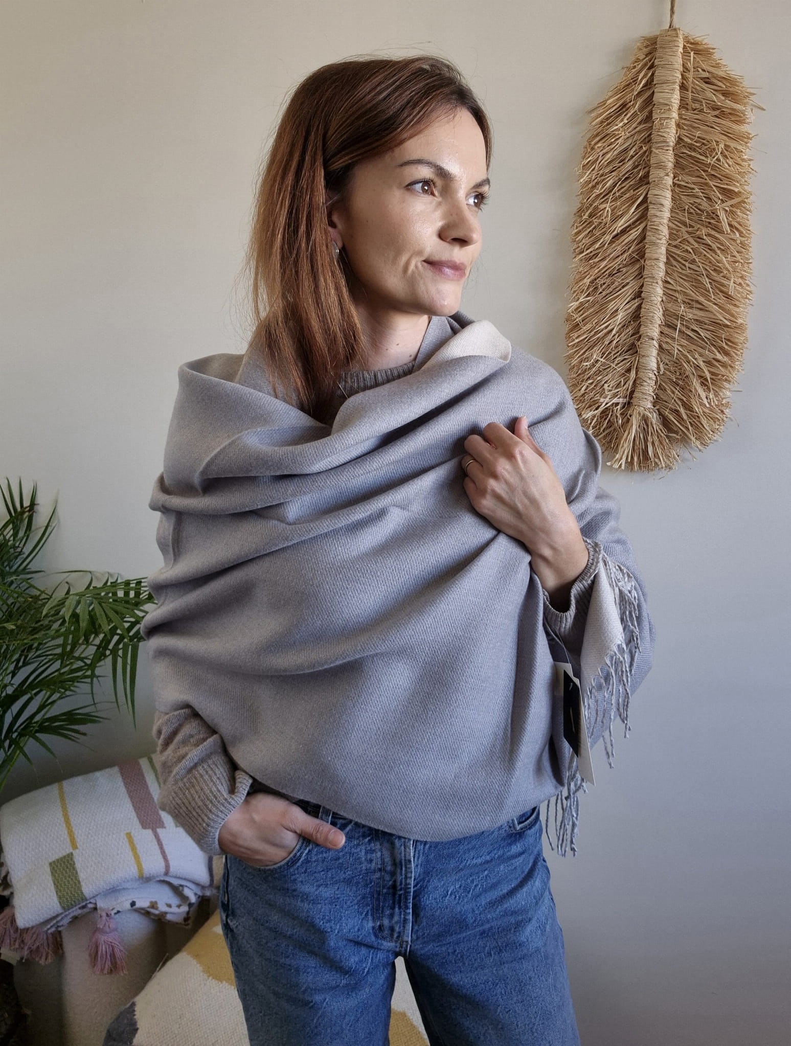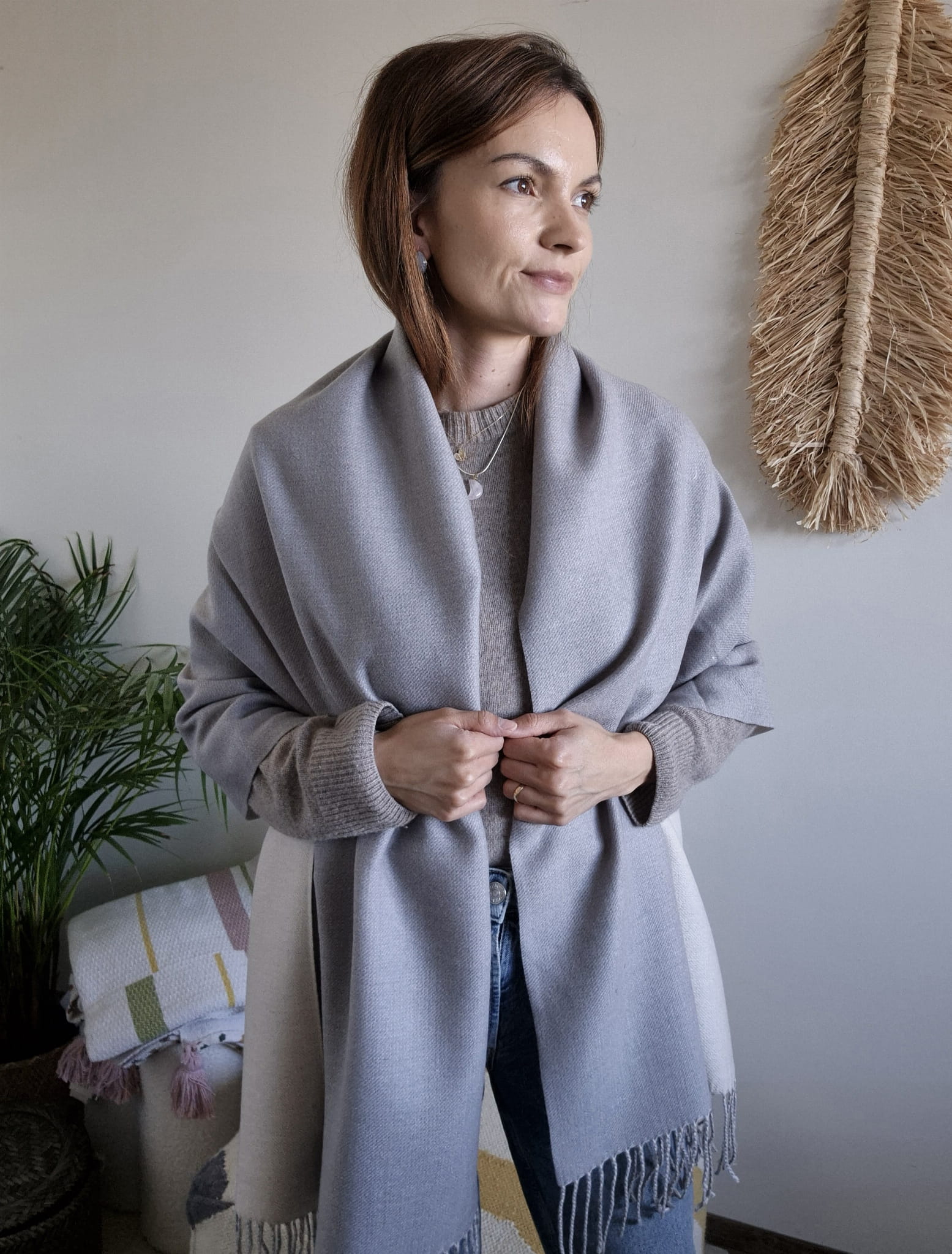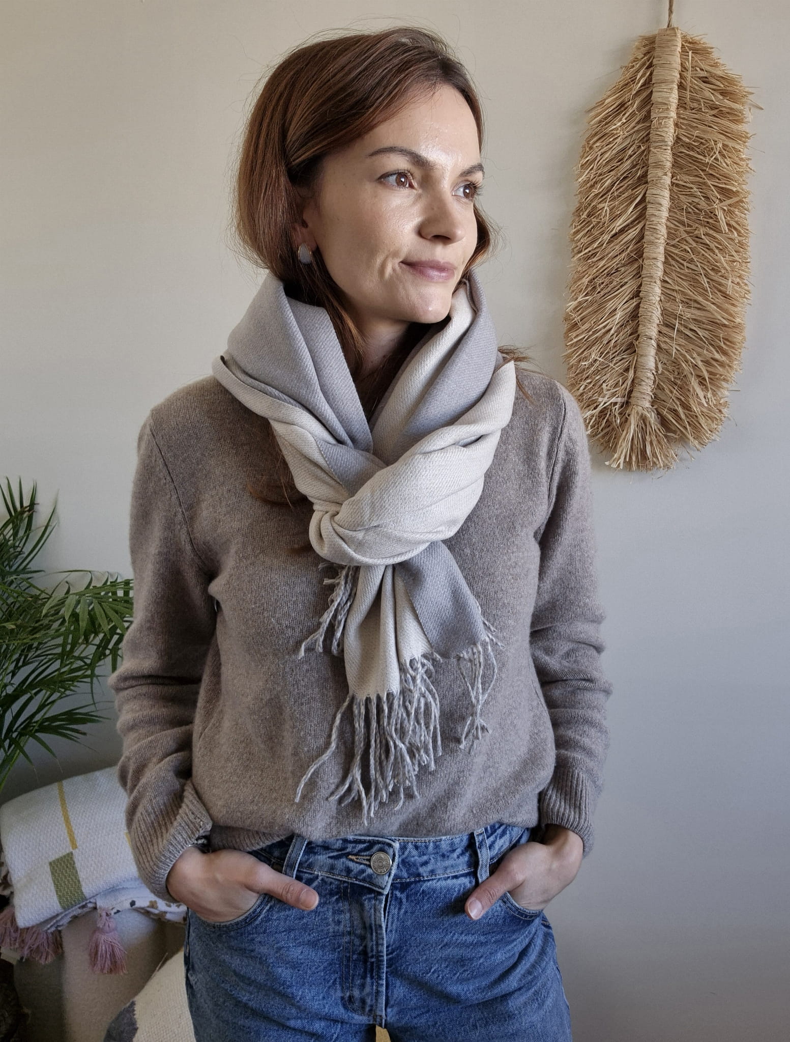 Przyjemny w dotyku, naturalny materiał otuli Cię w chłodniejsze dni, a uniwersalne barwy sprawią, że dopasujesz go do wielu jesiennych i zimowych stylizacji.
