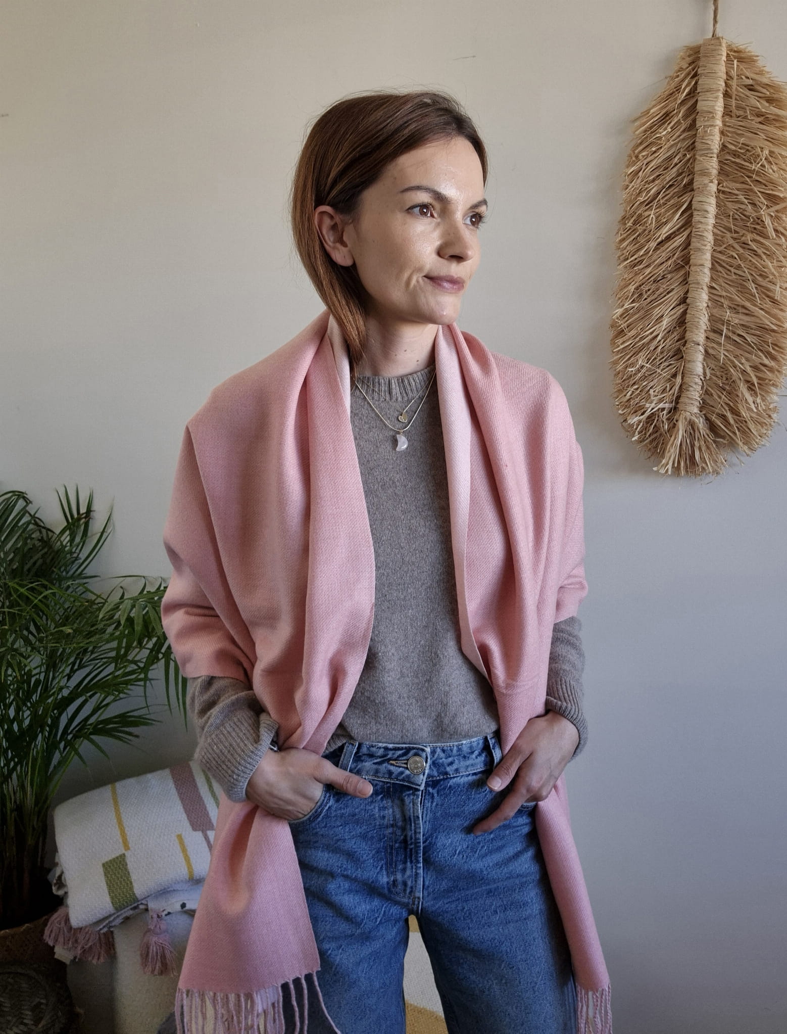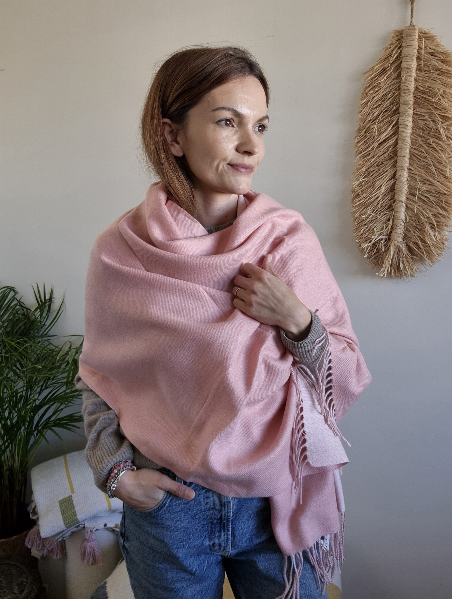 Dwustronny szalik damski 65x210 cm wiskoza i bawełna | Kolor różowy