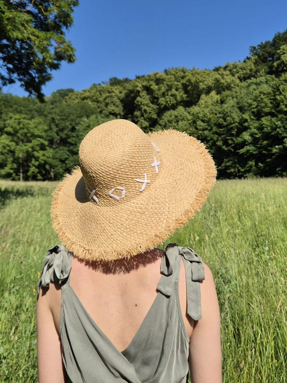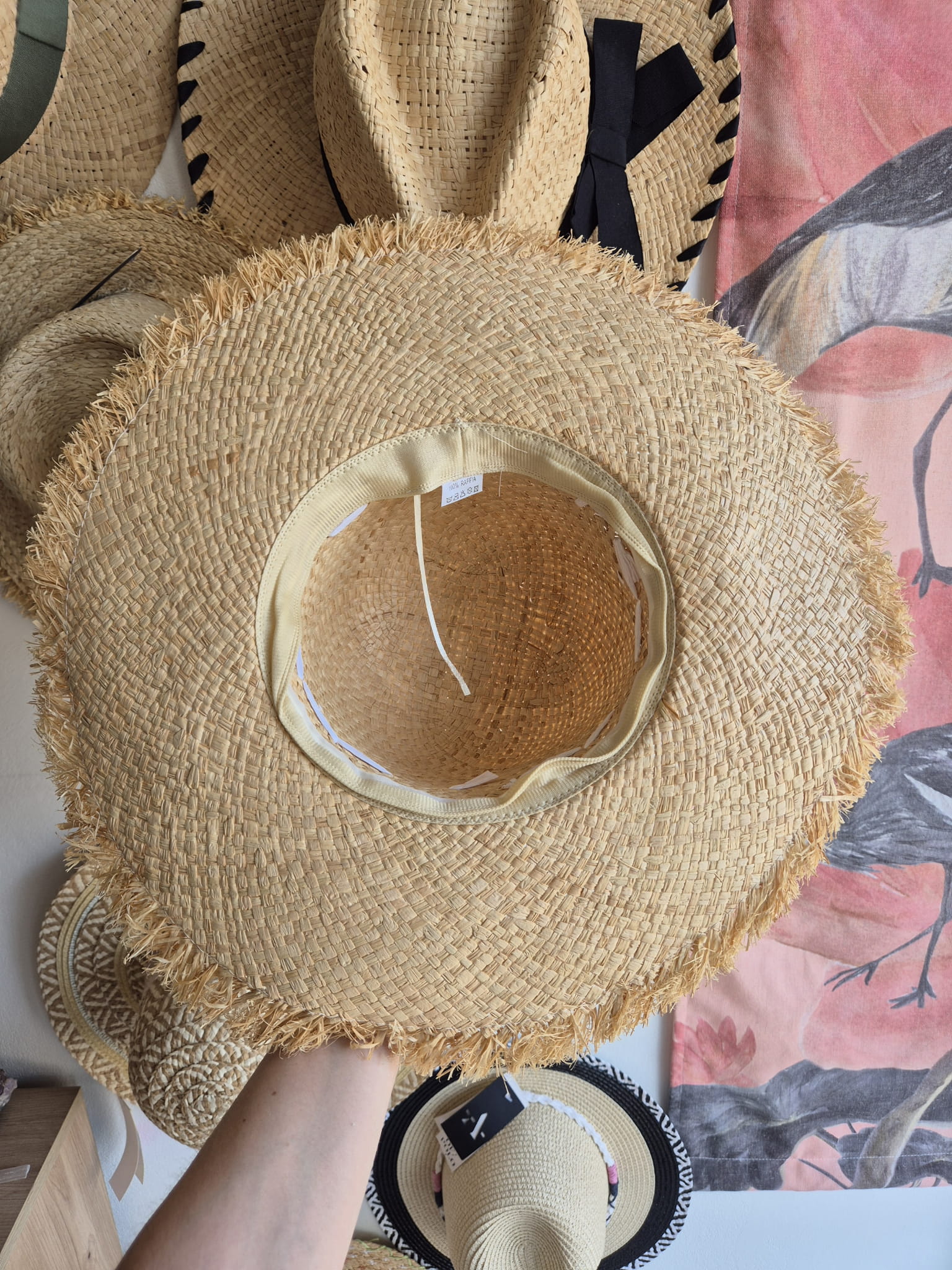 Letni kapelusz z szerokim rondem, wykonany w 100% z naturalnej trawy.