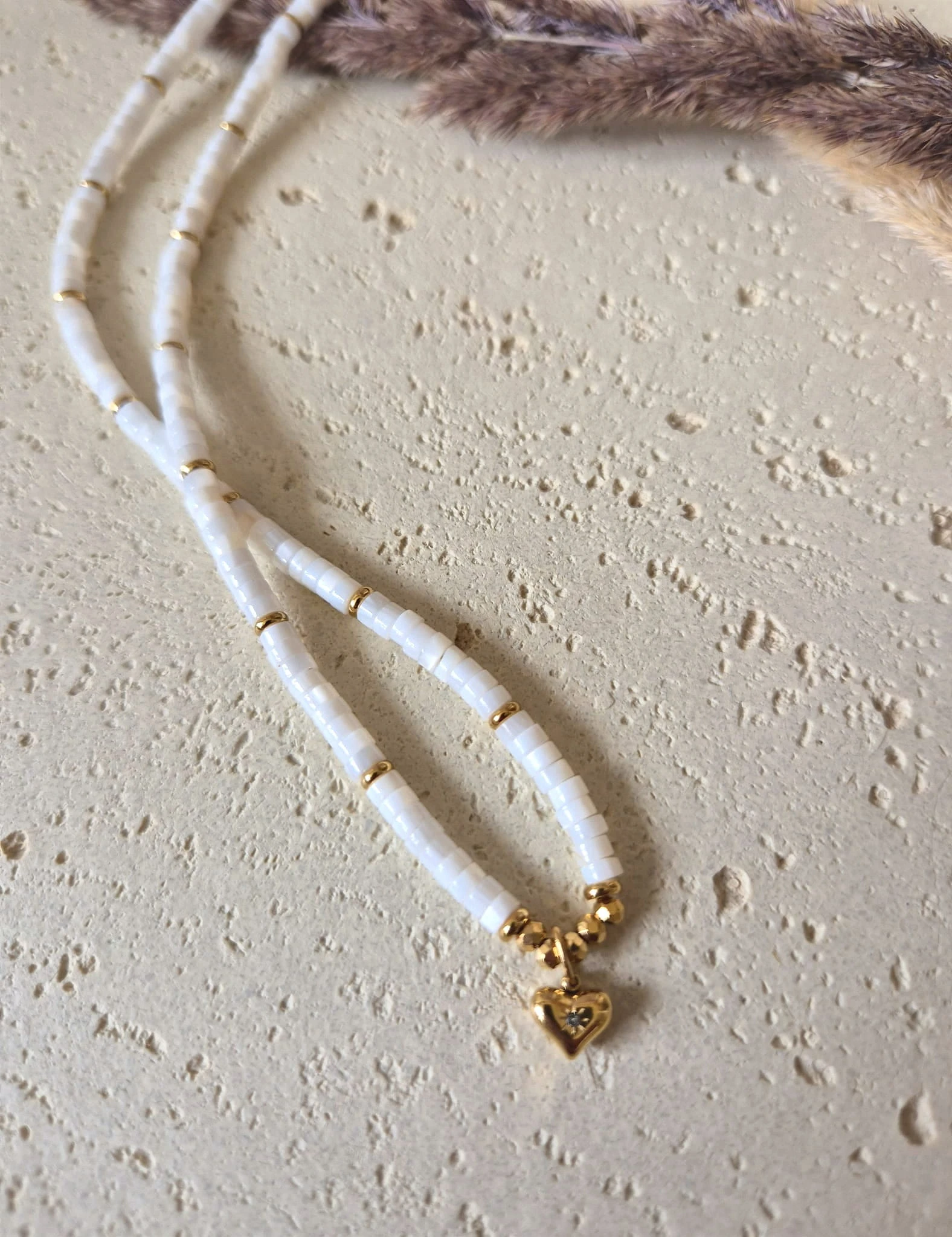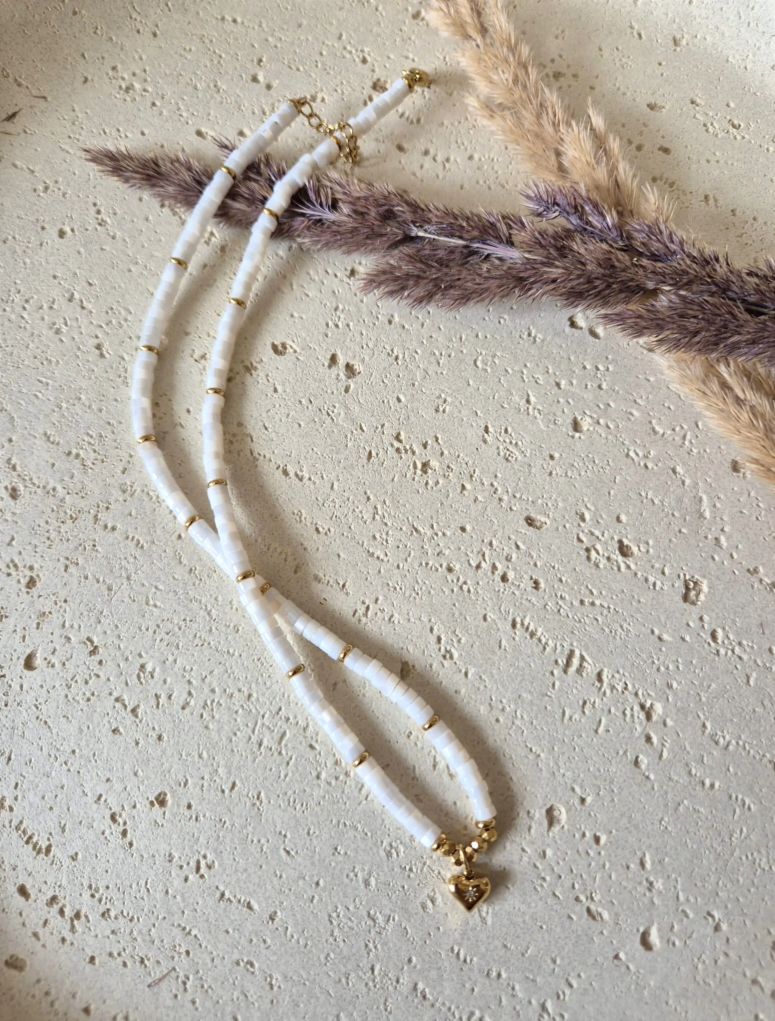 Naszyjnik z Sercem Muszla Naturalna Pozłacana 16K | Biżuteria na Dzień Mamy | Prezent z Dedykacją