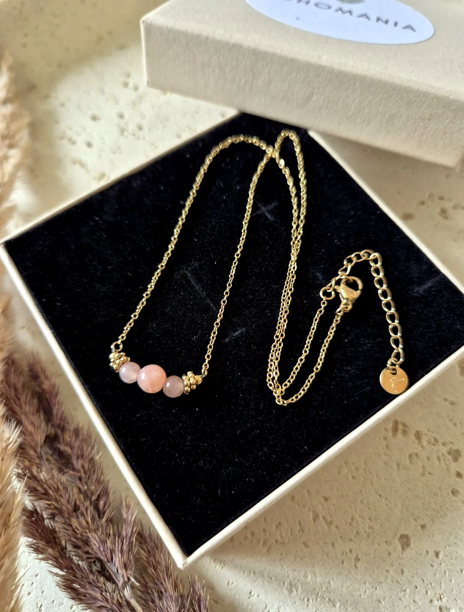 Minimalistyczny naszyjnik z różowym kryształem, stworzony z myślą o kobietach ceniących biżuterię z duszą. Połączenie naturalnego kamienia o łagodnej, różowej barwie z oprawą złoconą 16-karatowym złotem tworzy ponadczasowy dodatek, który rozświetla każdą stylizację i dodaje jej szlachetnej aury.