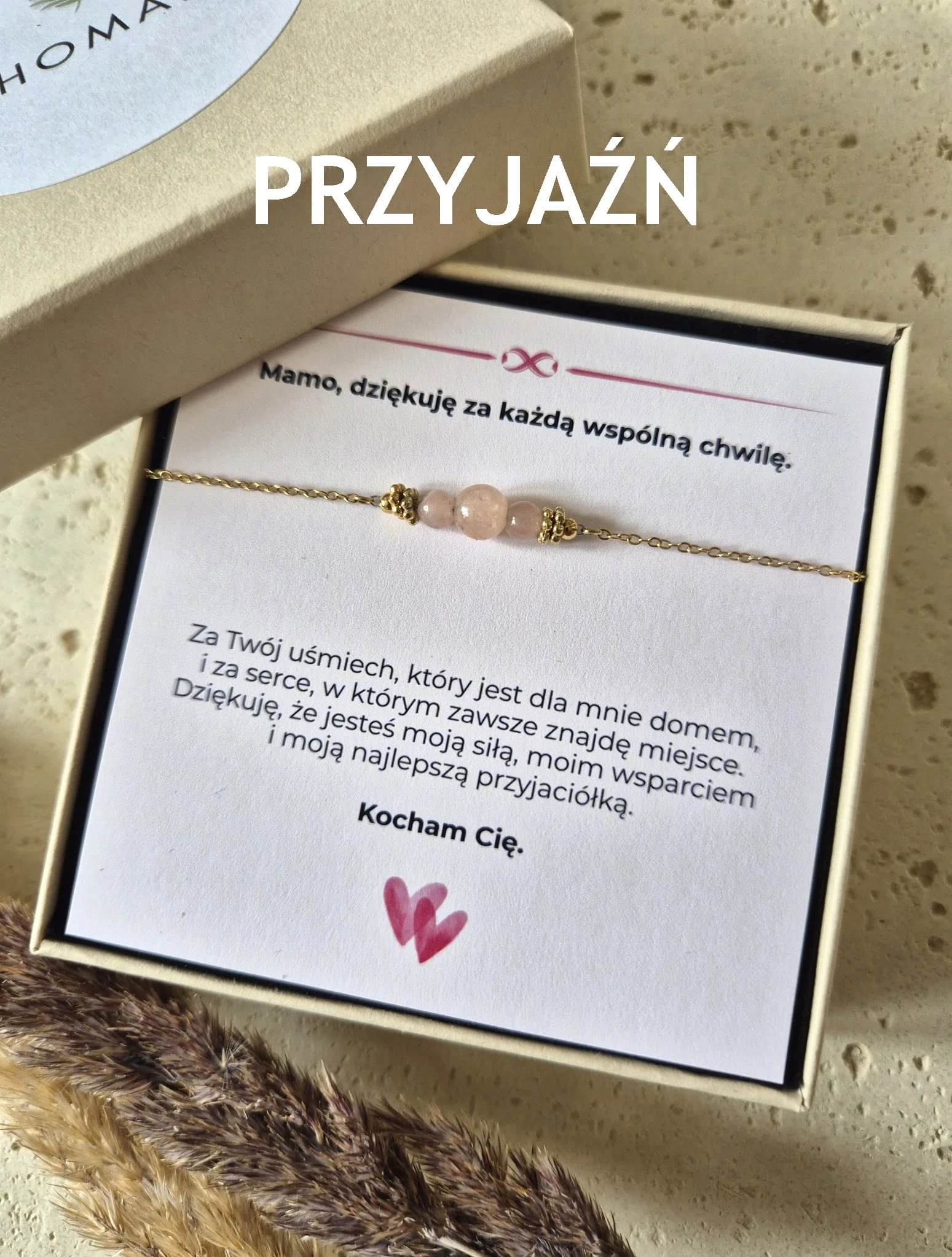 Naszyjnik z różowym kryształem i 16K złotem| Biżuteria na Dzień Mamy z Dedykacją | Prezent dla Mamy