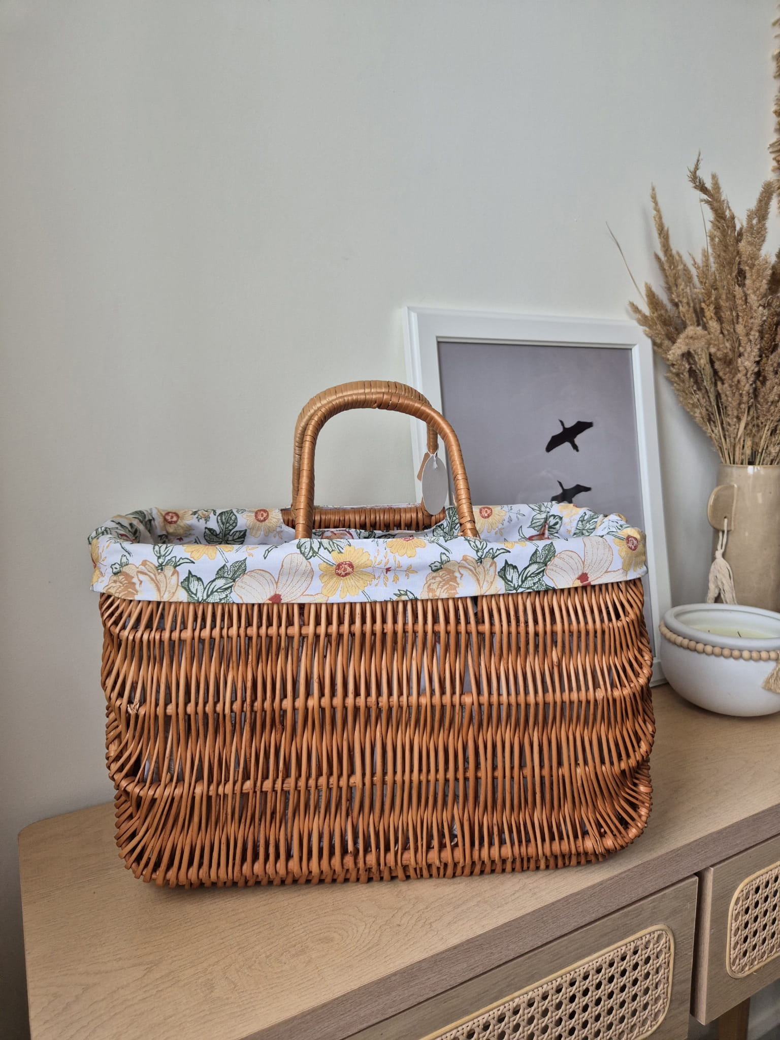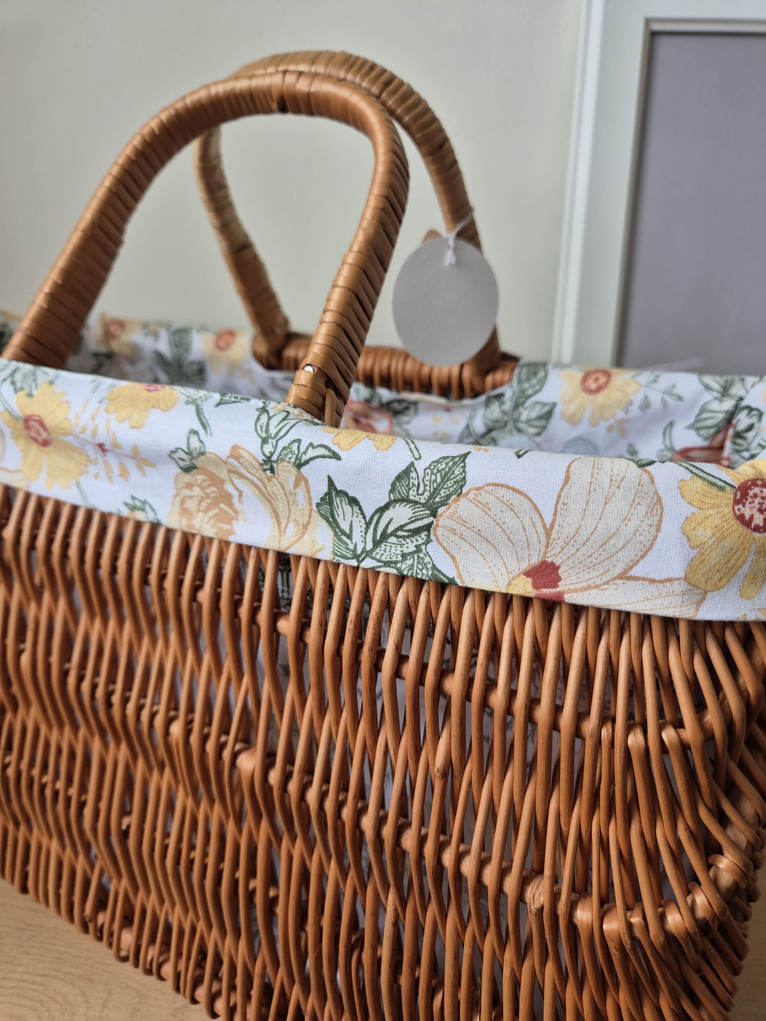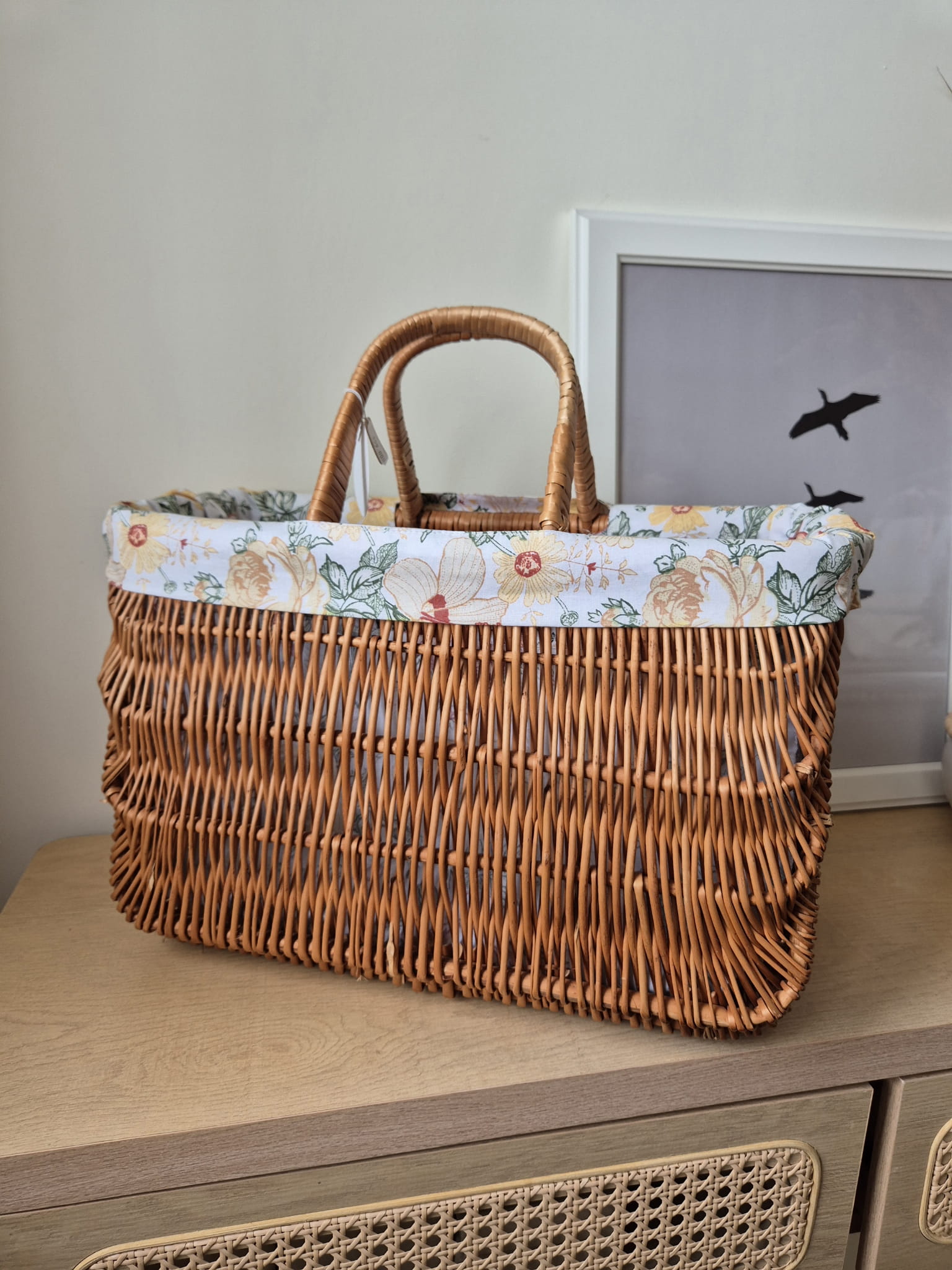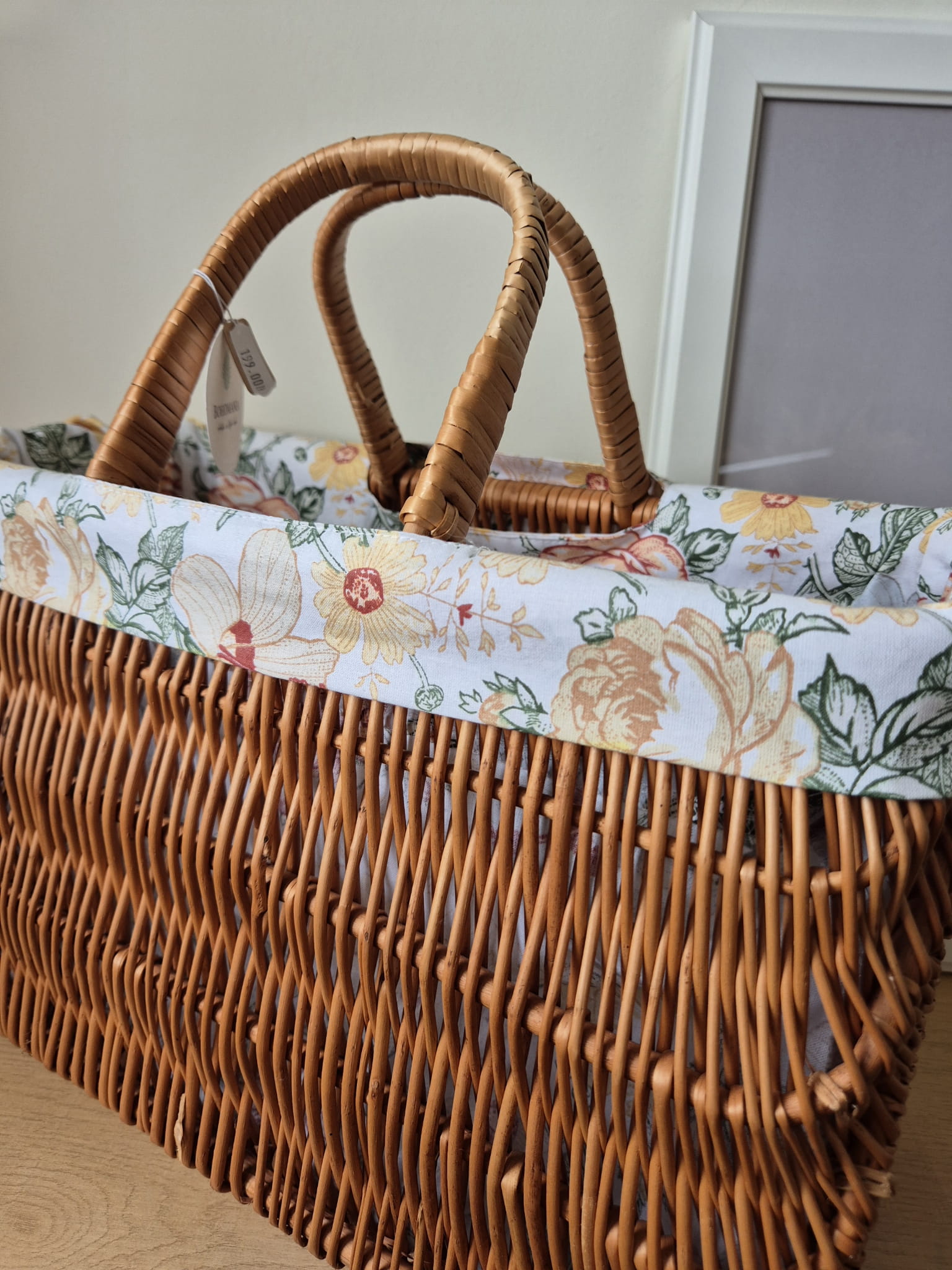 Pleciony koszyk torebka na zakupy z wikliny | Boho koszyk z kwiatową wyściółką