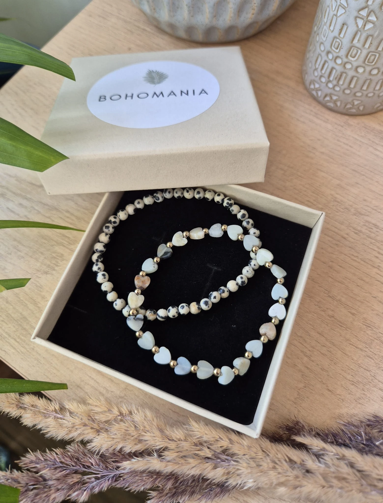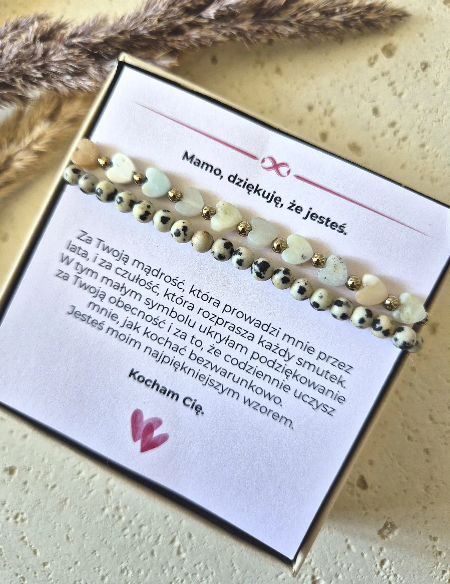 Radość i Optymizm – Zestaw dla Mamy | Jaspis Dalmatyński i Amazonit | Prezent z dedykacją
