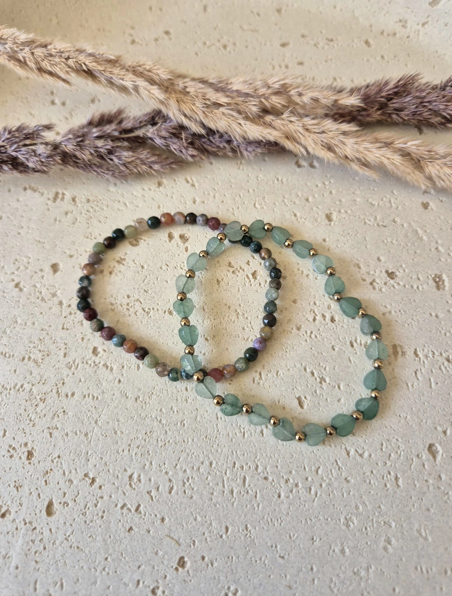 Połączenie liściastej zieleni awenturynu z mszystymi, ziemistymi odcieniami agatu indyjskiego działa jak spacer po lesie tuż po deszczu. To zestaw, który pomaga wyciszyć przebodźcowane zmysły, uziemia i przywraca cierpliwość w wymagających momentach. Zielony awenturyn naturalnie rozładowuje napięcie, a agat indyjski wspiera stabilność i ułatwia złapanie dystansu do natłoku spraw. To biżuteria, która staje się osobistym „zielonym azylem”, przypominając o potrzebie regeneracji i zwolnienia tempa.