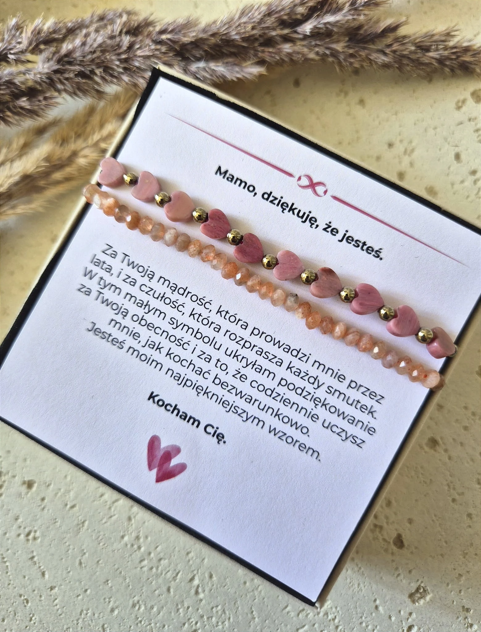 Słoneczna Energia i Spokój – Zestaw dla Mamy | Kamień Słoneczny i Rodonit | Prezent z dedykacją