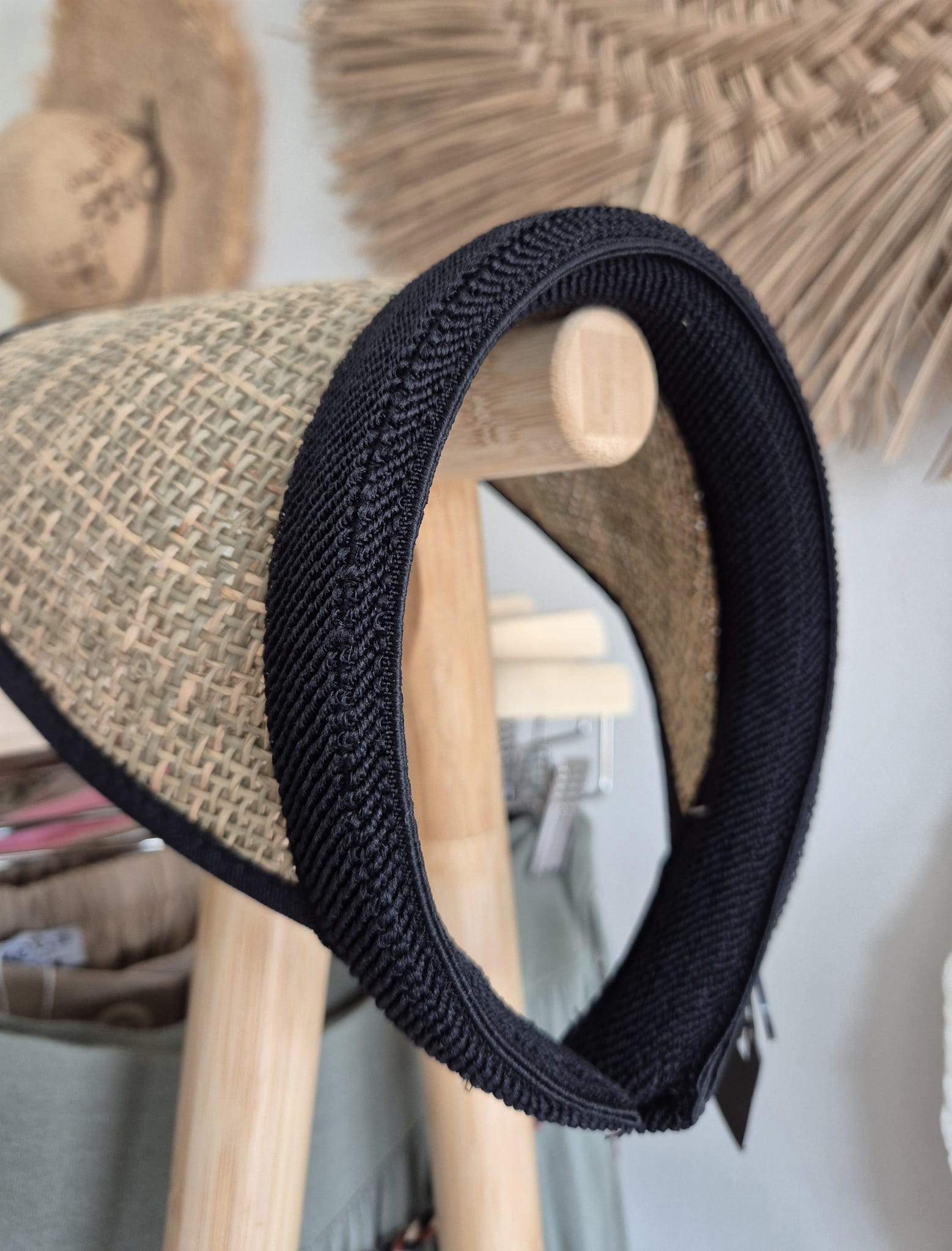 Summer - Damski daszek na lato/Kolor naturalny z czarnymi wstawkami 100% trawa