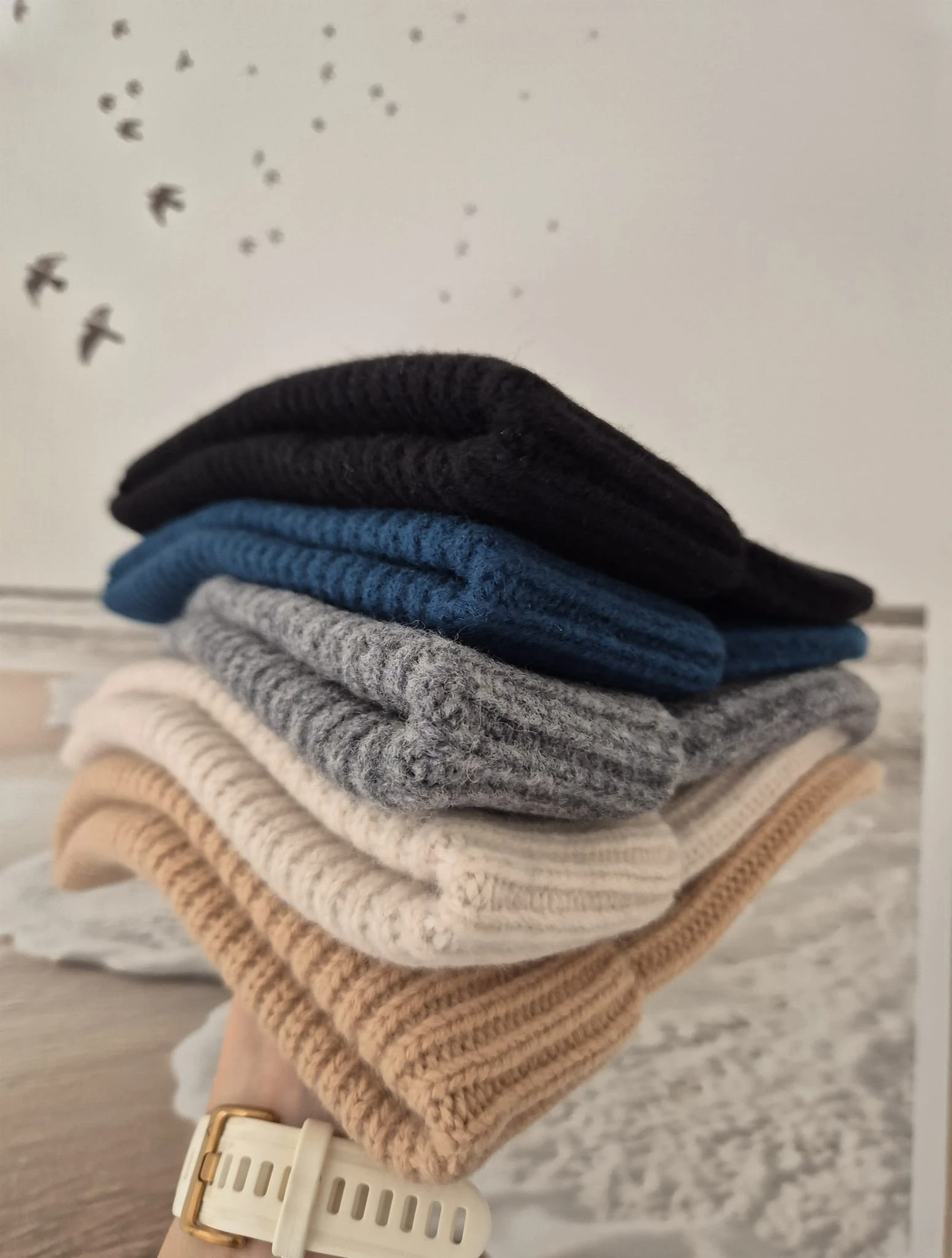 Czapka zimowa z miękkiej wełny jagnięcej, która otula głowę ciepłem i komfortem.